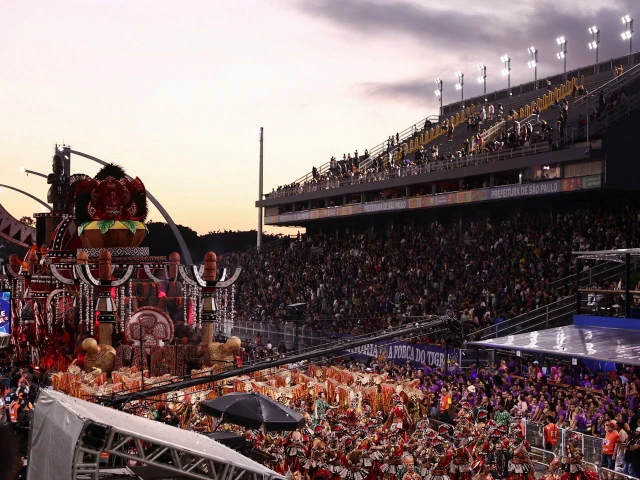 Revellers from the Camisa Verde e Branco school perform during a Carnival parade at Anhembi Sambadrome in Sao Paulo, Brazil February 15, 2026. PHOTO: REUTERS