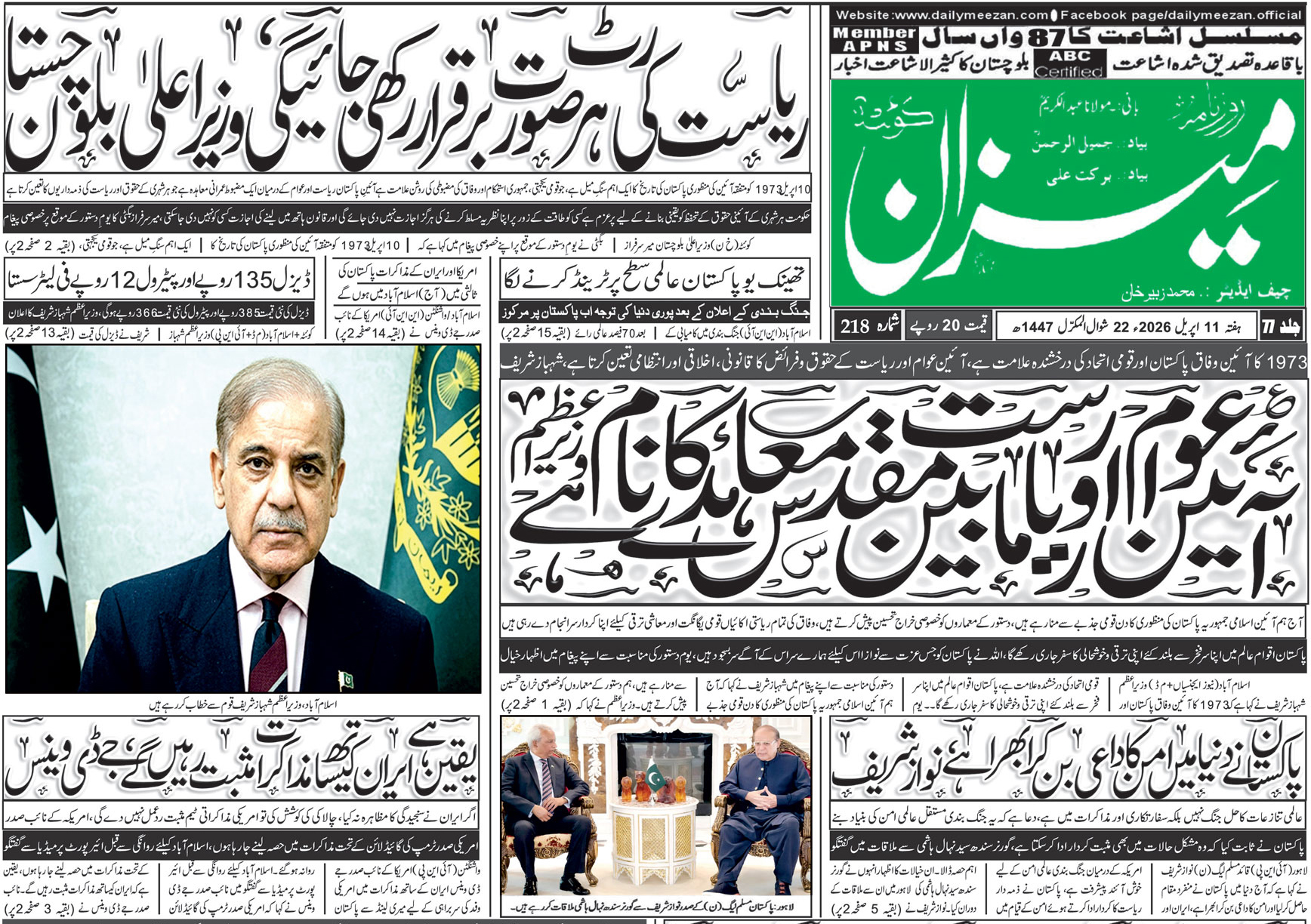 HomeEpaperDaily MEEZAN Quetta today’s Newspaper 11-04-2026 Daily MEEZAN Quetta today’s Newspaper 11-04-2026 April 11, 2026