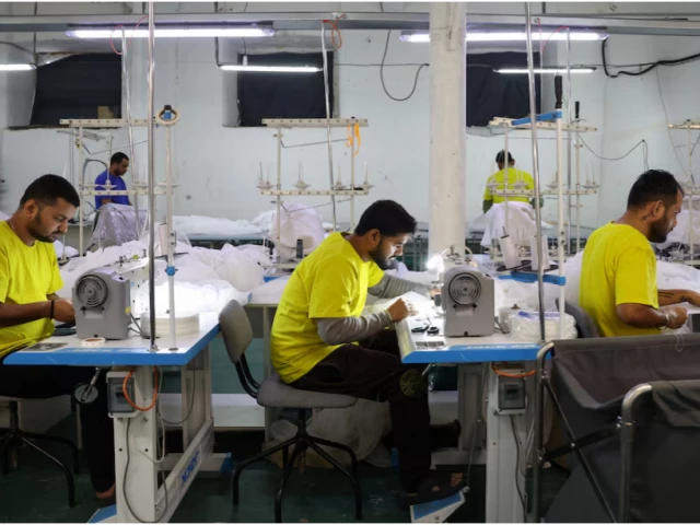 Raj, 32, Shail, 30, and Gaurav, 23 (no last names given), migrant workers from India, sew tulle fabric at a textile factory in the town of Balashikha outside Moscow, Russia, January 20, 2026. PHOTO: REUTERS