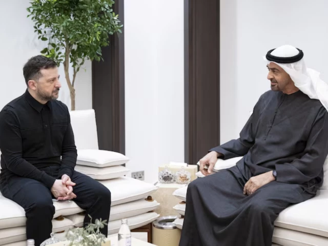 Ukraine’s President Volodymyr Zelensky said on Saturday he had met with United Arab Emirates President Sheikh Mohammed bin Zayed Al Nahyan and that they had agreed to cooperate in the field of security and defence.