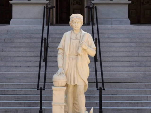 This statue is a replica of the one US protestors had tossed into Baltimore’s harbor after George Floyd’s killing in 2020.https://t.co/OH6E9F62lR pic.twitter.com/wQ3iWMaQNW